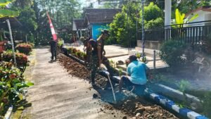 Anggota Satgas Yonarmed 1/AY/2/2 Kostrad “Gas Pol” Gali Pipanisasi Air Bersih di Lebakharjo