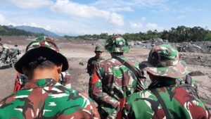 Apel dilakukan tepat di area yang sebelumnya dilanda material banjir lahar dingin, sebagai bentuk pengecekan kekuatan personel sekaligus penyelarasan tugas lapangan. Kehadiran Peltu Baidlowi Abdullah di tengah medan terdampak menunjukkan bahwa TNI tidak hanya bekerja dari pos komando, tetapi turun langsung memastikan setiap unsur siap menghadapi dinamika situasi di lapangan.