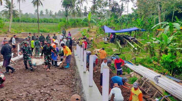 BANYUWANGI – Pemandangan penuh semangat kebersamaan terlihat di Desa Kesilir, Kecamatan Siliragung, Kabupaten Banyuwangi. Anggota Satuan Tugas (Satgas) TNI Manunggal Membangun Desa (TMMD) bersama