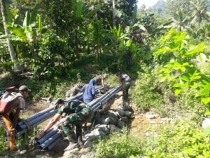telah tiba. Satuan tugas (Satgas) dari Yonarmed 1/AY/2/2 Kostrad bergerak cepat mendistribusikan material pipa untuk instalasi pipanisasi air bersih di Dusun Sukomaju B, Desa Lebakharjo, Kecamatan Ampelgading.