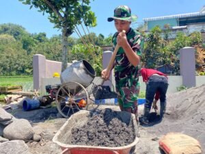 Anggota Satgas TNI Manunggal Membangun Desa (TMMD) ke-126 Kodim 0818/Malang-Batu dari Yonzipur 5, Praka I Wayan Juliawan, bersama rekan-rekannya, terus menunjukkan semangat dan dedikasi tinggi dalam melaksanakan tugas pembangunan infrastruktur di wilayah pedesaan. Kali ini, mereka bersama warga Dusun Krajan A, Desa Lebakharjo, Kecamatan Ampelgading, bergotong royong membangun saluran drainase sebagai salah satu sasaran fisik TMMD.