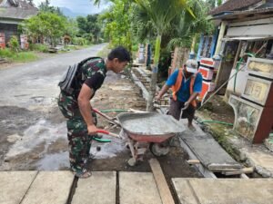 . Pada program kali ini, personel Satuan Angkatan Udara Republik Indonesia (AURI) bersama warga melanjutkan pekerjaan pengecoran drainase di Dusun Krajan 1B, Desa Lebakharjo, Kecamatan Ampelgading, Kabupaten Malang.