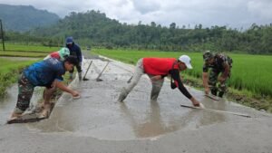 Semangat gotong royong terus membara dalam pelaksanaan TNI Manunggal Membangun Desa (TMMD) Ke-126 Kodim 0818/Malang-Batu. Kolaborasi apik antara Satuan Angkatan Udara Republik Indonesia (AURI) dan warga kembali ditunjukkan melalui percepatan pengecoran jalan usaha tani yang vital bagi masyarakat Dusun Sukomaju B Desa Lebakharjo Kecamatan Ampelgading Kabupaten Malang.