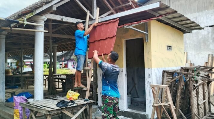 Pantauan di lokasi menunjukkan para personel Satuan Tugas (Satgas) TMMD ke-125 bersama warga masyarakat bahu-membahu mengerjakan tahap finishing. Sebagian personel fokus pada pemasangan material atap untuk melindungi struktur bangunan dari panas dan hujan. Sementara itu, personel lainnya dengan teliti mulai mengaplikasikan cat pada dinding MCK, memberikan sentuhan warna yang rapi dan bersih.