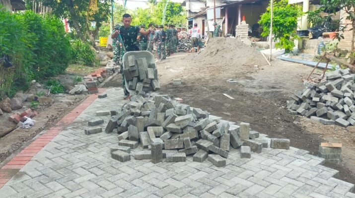 Banyuwangi – Satgas TNI Manunggal Membangun Desa (TMMD) ke-125 Kodim 0825/Banyuwangi terus melanjutkan pengerjaan paving jalan menuju jembatan penghubung di wilayah Kecamatan Siliragung,