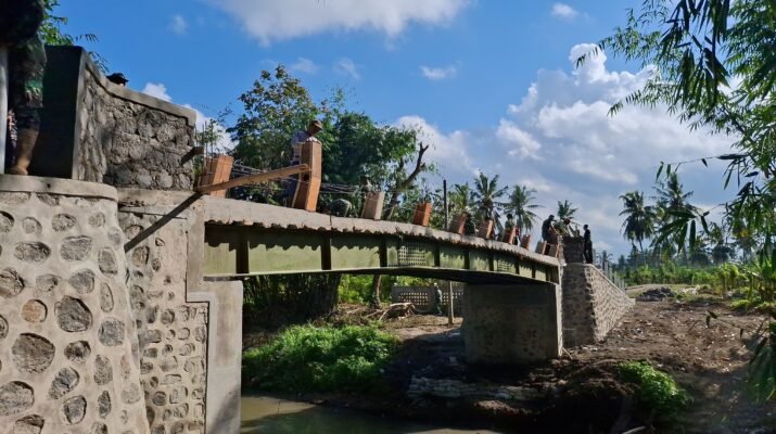 BANYUWANGI – Pembangunan jembatan penghubung antar desa yang menjadi salah satu sasaran fisik TMMD ke-125 Kodim 0825 Banyuwangi kini hampir rampung. Satgas TMMD bersama