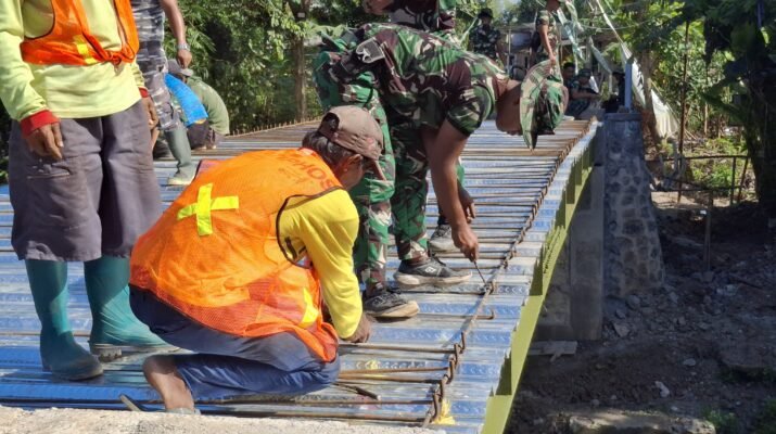 Banyuwangi – Pembangunan sasaran fisik berupa jembatan dalam program TNI Manunggal Membangun Desa (TMMD) ke-125 Kodim 0825/Banyuwangi mulai menunjukkan hasil yang signifikan. Proyek pembangunan