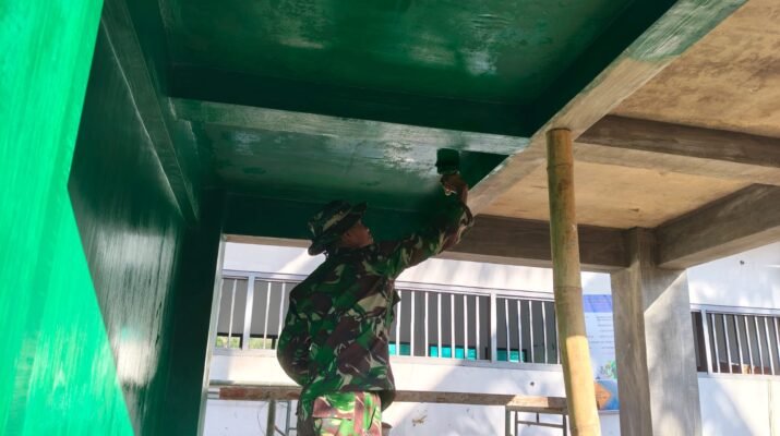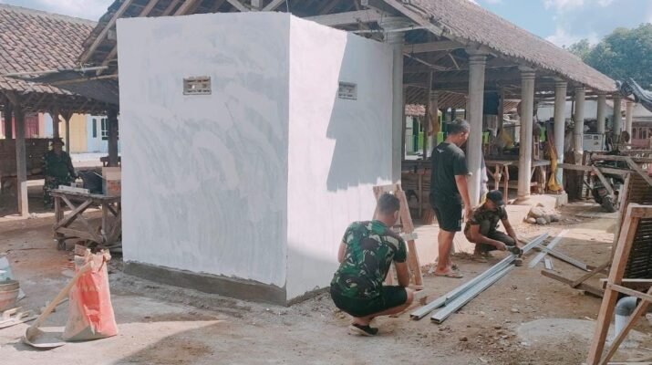 Banyuwangi – Derap langkah dan denting palu terus bergema di lokasi TMMD ke-125. Kloset dan keramik lantai yang telah terpasang kini menjadi saksi semangat
