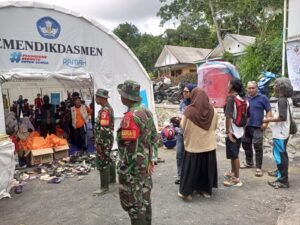 TNI Dampingi Guru Mengajar di Sekolah Darurat untuk Pastikan Hak Belajar Anak Tetap Terpenuhi