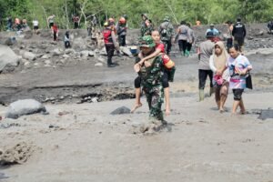 TNI Evakuasi Warga di Tengah Derasnya Lahar Dingin Semeru: Wujud Nyata Pengabdian Tanpa Batas.